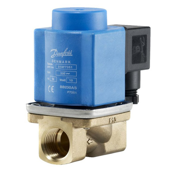 EV251B with assisted lift can operate from zero and up to 10 bar differential pressure.This 2/2-way valve programme is especially suitable for applications such as closed systems with low and fluctuating pressure conditions or open systems with differential pressure down to 0 bar. The valve includes coil and plug. For water, oil, compressed air and similar neutral media Kv value: Up to 6 m3/h Differential pressure: Up to 10 bar Viscosity: Up to 50 cSt Ambient temperature: Up to +80 °C Media temperature from -10 to +90 °C Coil enclosure: IP 65 Thread connections: From G 3/8 to G 1