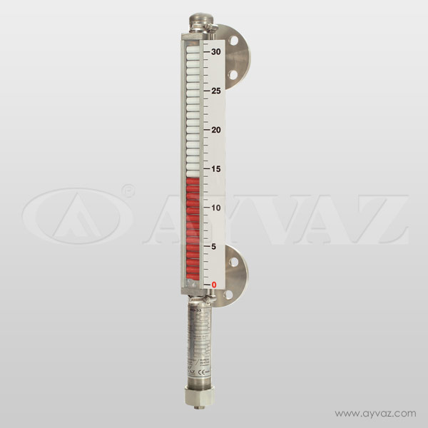 Ayvaz MG-33SC Manyetik Seviye Göstergesi, basınç dayanımı gerektirmeyen tanklarda kullanılan hafif dizaynlı seviye göstergeleridir. Sıvıların kaldırma ve elektro-manyetiğin itme ve çekme prensiplerini bir arada kullanarak tasarlanmış kullanışlı ve emniyetli bir cihazdır. Sıvı seviye değişimini takip eden şamandıranın içinde yer alan mıknatıslar, dış cidar üzerine yerleştirilmiş kırmızı–beyaz renkli flapları etkileyerek seviyeyi takip etmenizi sağlar. Cetvelli tip ile kolay seviye yüksekliği okuma imkanı sağlar.