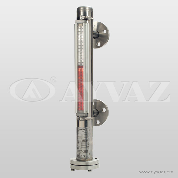 AYVAZ MGK-33 Seviye kontrol cihazları, sıvıların kaldırma ve elektromanyetiğin itme ve çekme prensiplerini bir arada kullanarak tasarlanmış kullanışlı ve emniyetli bir cihazdır. Sıvı seviye değişimini takip eden şamandıranın içinde yer alan mıknatıslar,dış cidar üzerine yerleştirilmiş kırmızı–beyaz renkli flapları etkileyerek seviyeyi takip etmenizi sağlar. Alüminy