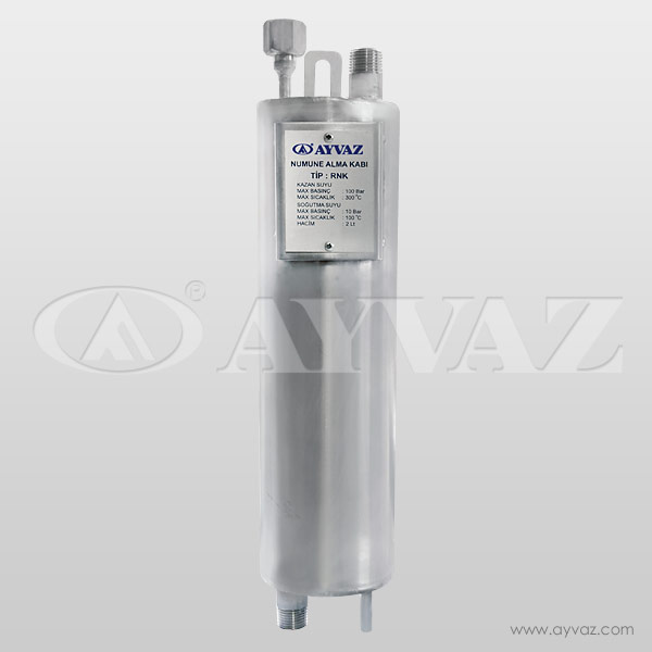 NK-16 Kazan Suyu Numune Alma Kabı Kazan suyu iletkenlik değerinin doğru ölçülüp ölçülmediğini kontrol etmek için zaman zaman kazan suyundan numune almak gerekmektedir. Kazan suyunun açık bir kaba alınması durumunda alınan numune suyunun bir kısmı flaş buhara dönüşeceği için sağlıklı bir numune olmayacak ve doğru bir
